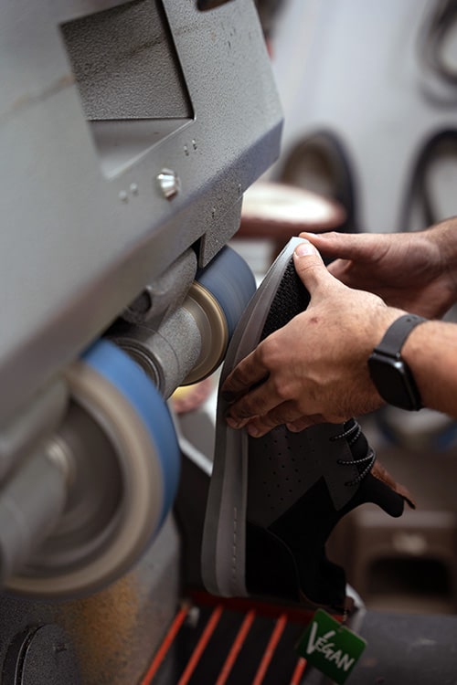 Feinschliff der Schuhsohle bei der Zurichtung